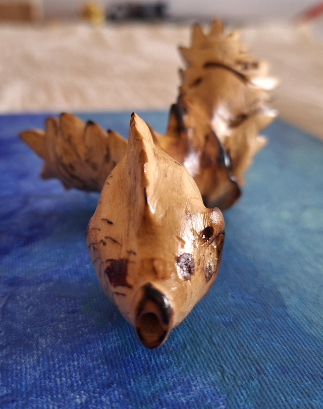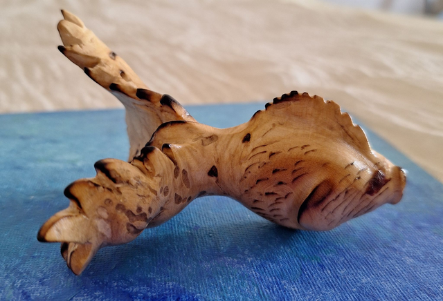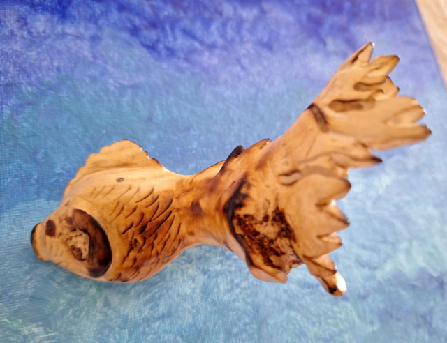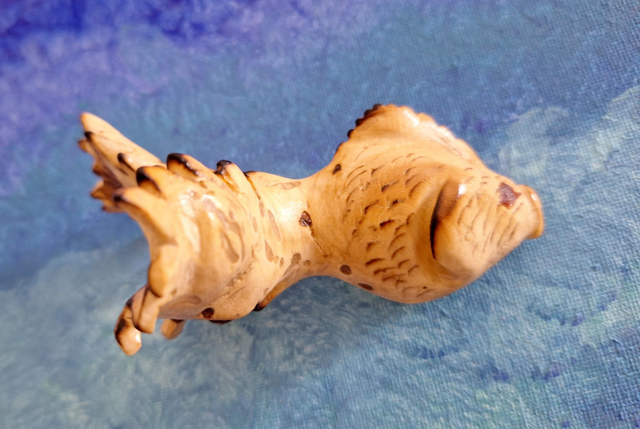 Pequeño pez de madera de naranjo (cabe en una mano) tallado a mano.